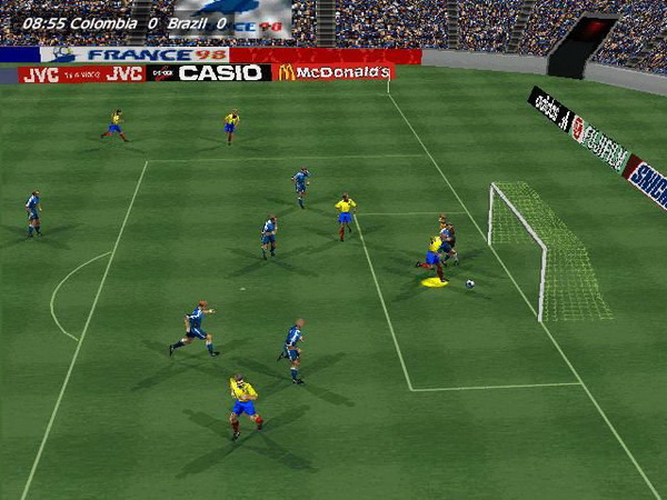 在这之后,东京分部的胜利十一人开始按照固定规律交替推出两个主题的作品——以各国国家队和欧美俱乐部球队为主的世界足球系列和以日本国内联赛为主的J联盟实况系列。1998年,日本第一次打入世界杯,《胜利十一人》3代(即ISS Pro 98)也借这股东风,找到了合适的游戏节奏。虽然操作没有太大变化,但球员和足球的活动轨迹,都大幅强化,玩起来爽快十足。这也是很多中国玩家第一次接触到的足球游戏。世界杯年,对实况的进化,总是意义非常。