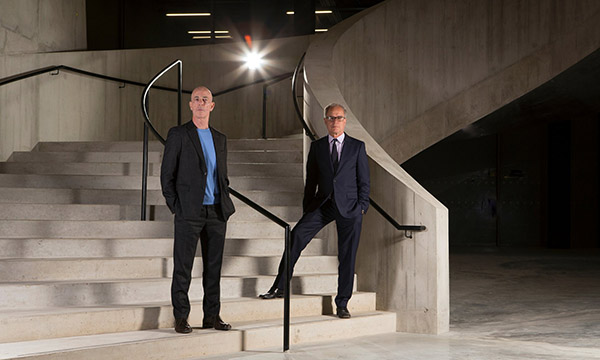泰特现代美术馆扩建建筑师赫尔佐格和德·梅隆在宽阔楼梯。特别是在我们的文化世界、艺术世界,我们每天都生活在不确定的状态中。我觉得热情其实是一种对自己的过度挖掘。所以,我给大家的忠告就是不要过于热情。我把自己定义成悲观主义的战略家。