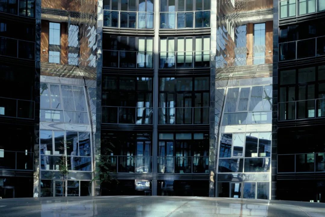 维也纳的四个储气罐是欧洲规模最大的,高236英尺,直径213英尺。1899年,它们被建立起来以储存煤气,为城市公共照明系统服务,一直延续到20世纪80年代。在1995年,市议会提出一项重新利用储气罐的建设工程方案,以980美元/平方英尺的政府保护价创建了1072平方英尺的公寓。努维尔对储气罐A进行再度设计,另外三座分别由Manfred Wehdorn,WiIhelm Holzbauer和Coop Himmeblau公司设计,每一座都有128间公寓。