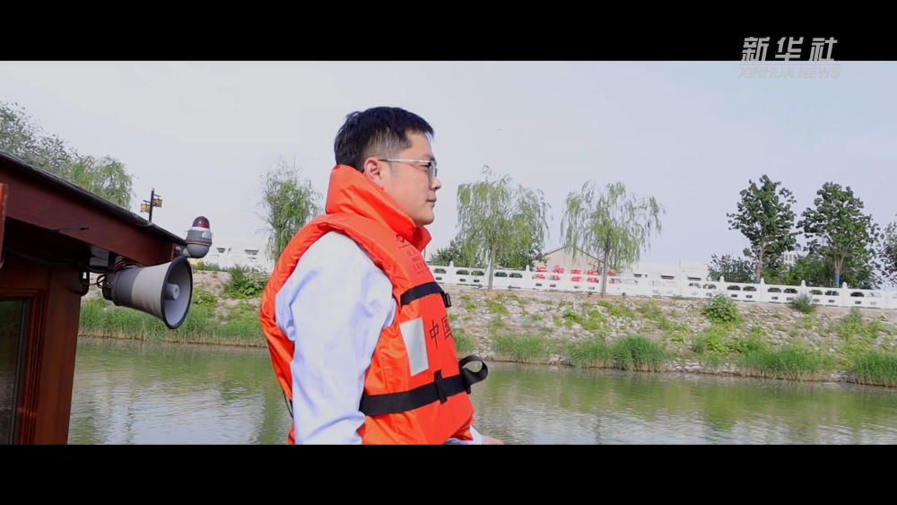 河北沧州,水利工程师陈飞正在大运河贯通补水的工作中忙碌。